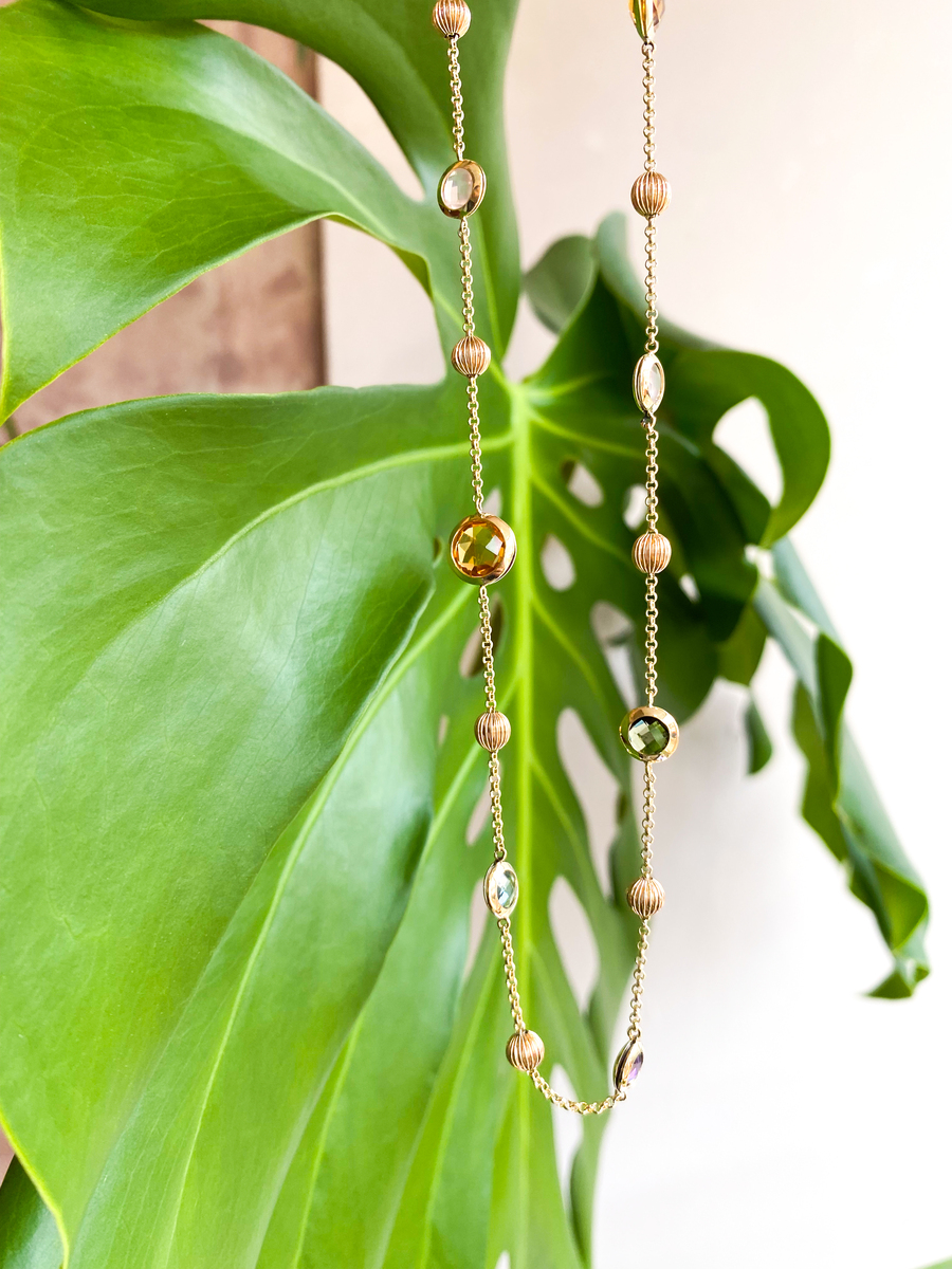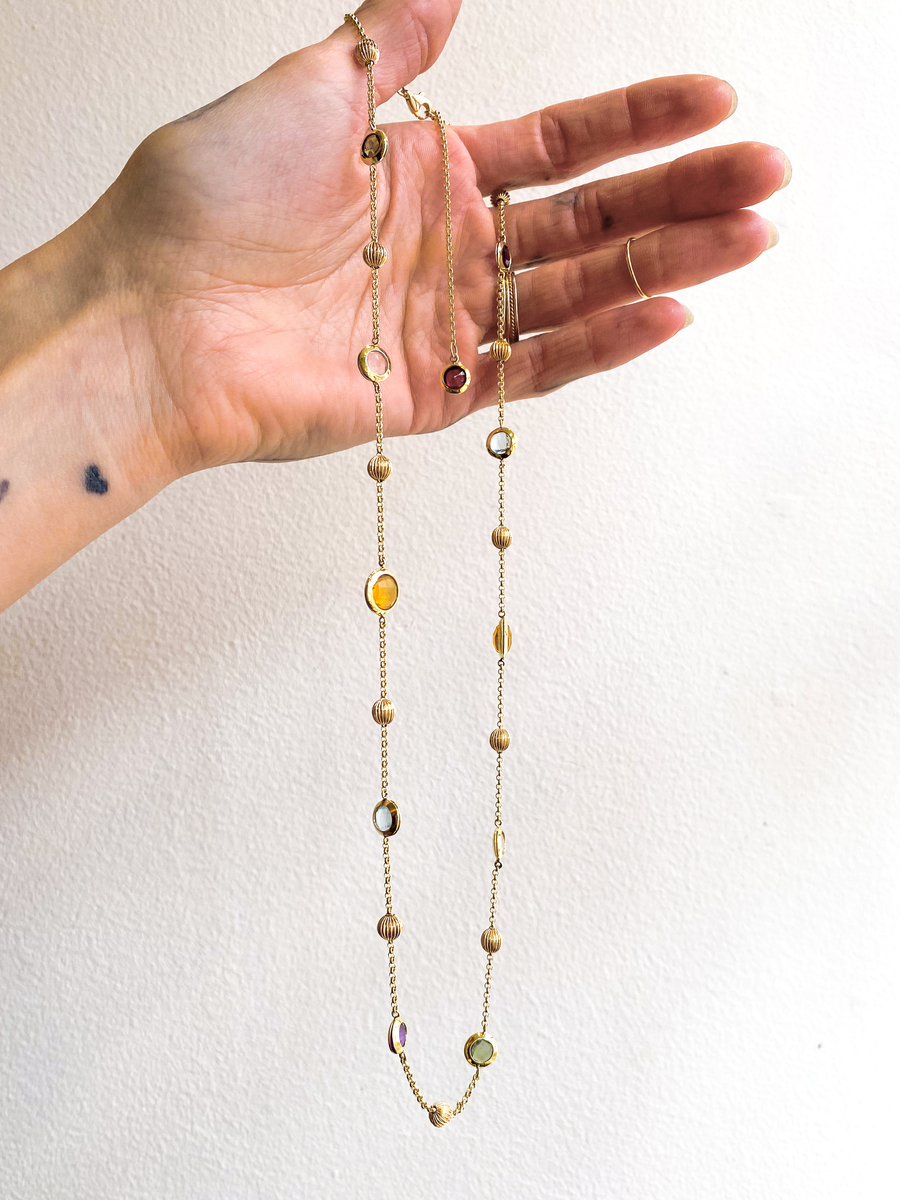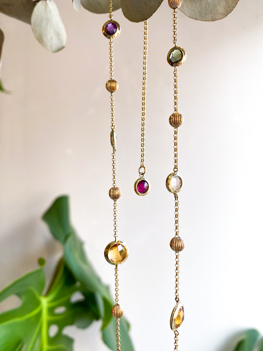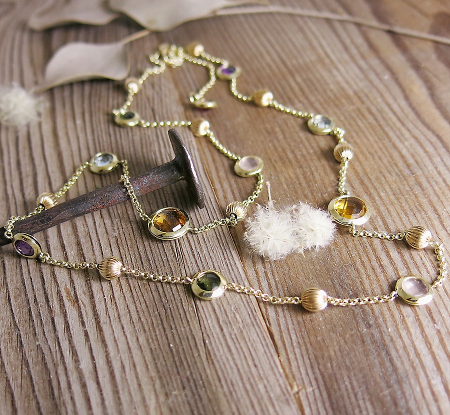 Náhrdelník ze žlutého zlata s přírodními leštěnými minerály