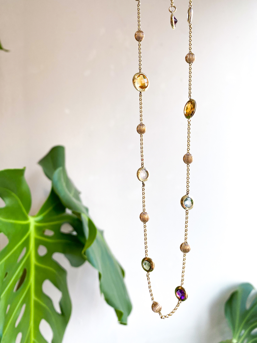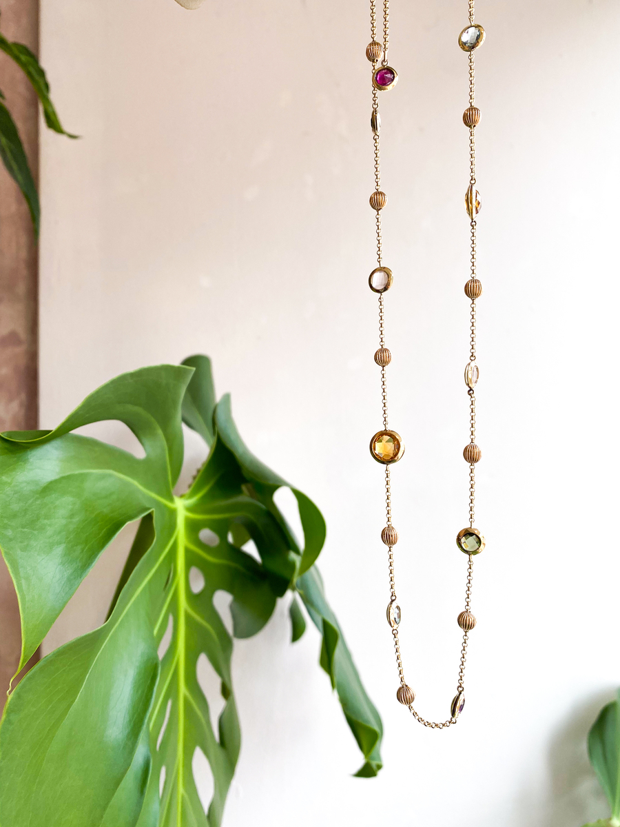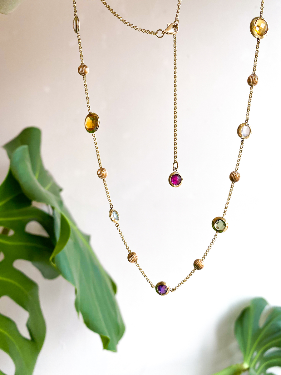 Náhrdelník ze žlutého zlata s přírodními leštěnými minerály