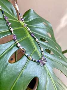 Decentní spojení přírodních minerálů s japonskými skleněnými korálky.