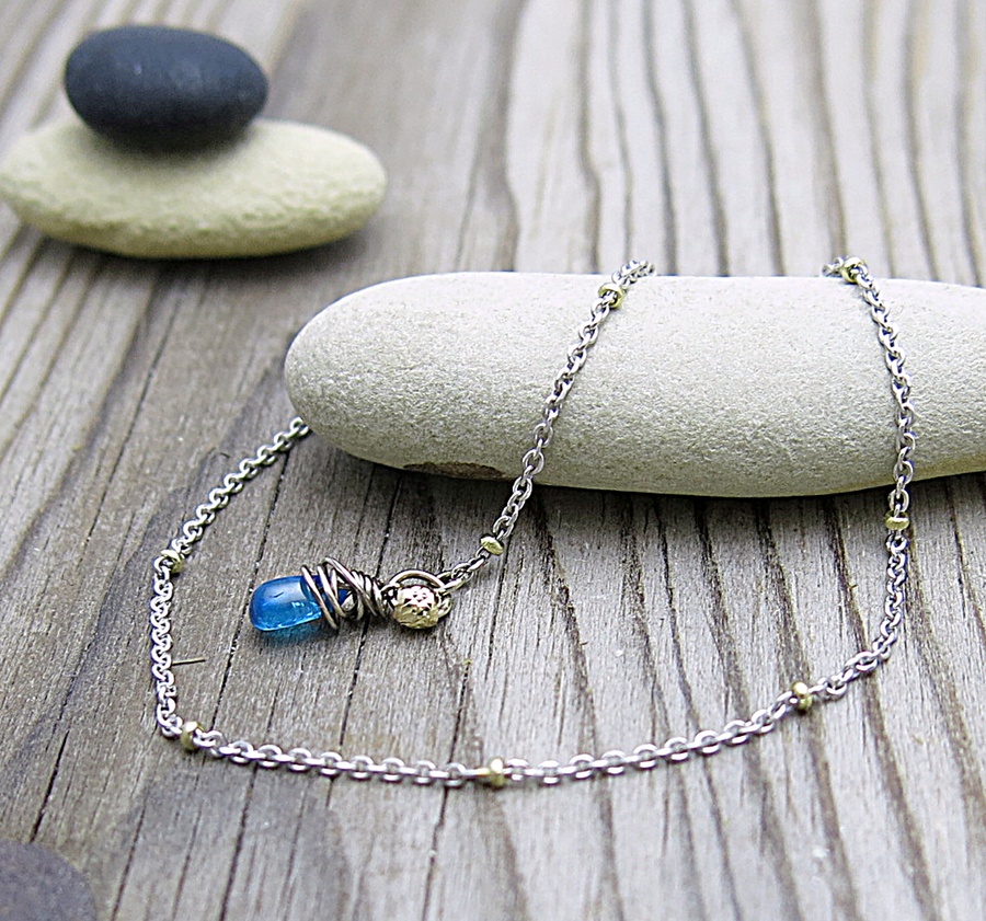 Náramek na ruku z bílého zlata s jemnými žlutými kuličkami a něžným modrým apatitem je velmi decentní ozdobou, která se hodí na běžné nošení i ke slavnostním příležitosem. Žluté kuličky náramek jemně oživí, drobný modrý apatit mu dodá šmrnc. Celkové ladění zlatého náramku je jemné a stylové. Náramek je originálním kouskem, kterým se bude pyšnit pouze jeho majitelka. Pochází z naší zlatnické ruční dílny, kde jsme zaměřeni na detail a kvalitu.