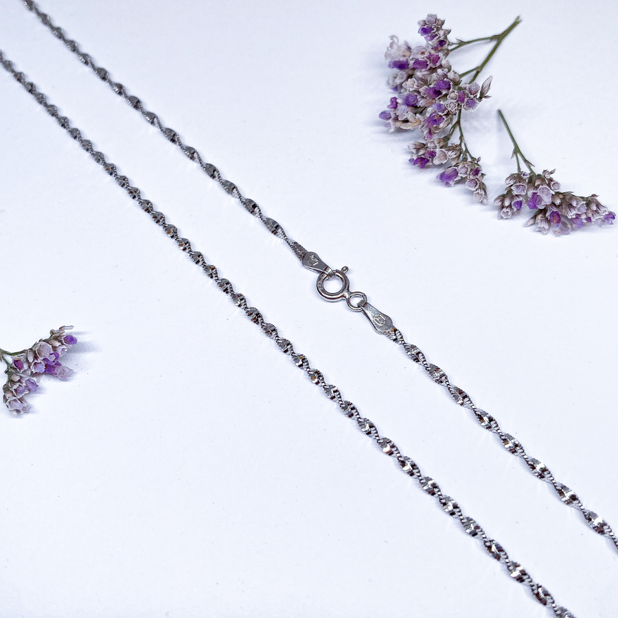 Stříbrný řetízek vhodný na různé druhy přívěsků nebo k nošení samostatně.