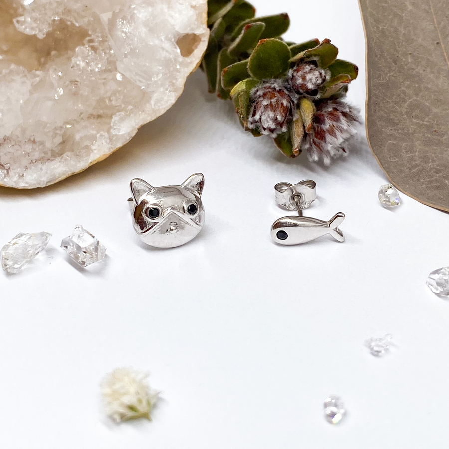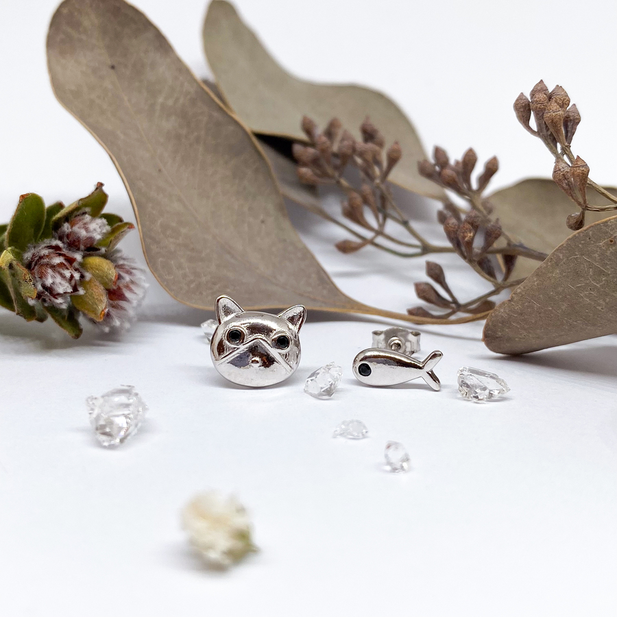 Rozměry šperku: kočička - 10 × 9 mm, rybka 10 × 4 mm