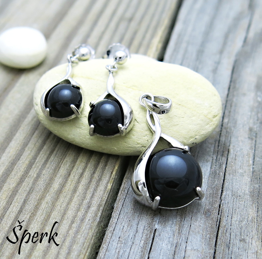 Stříbrná souprava s černým onyxem ve tvaru kapky