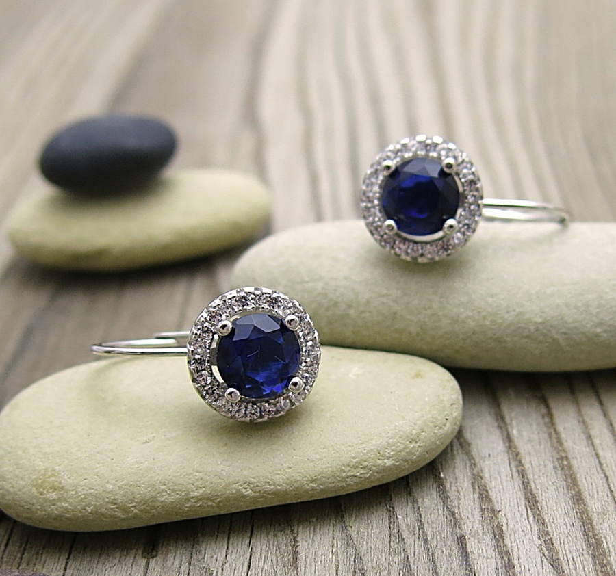 Stříbrné náušnice ~ modrý spinel a bílé zirkony