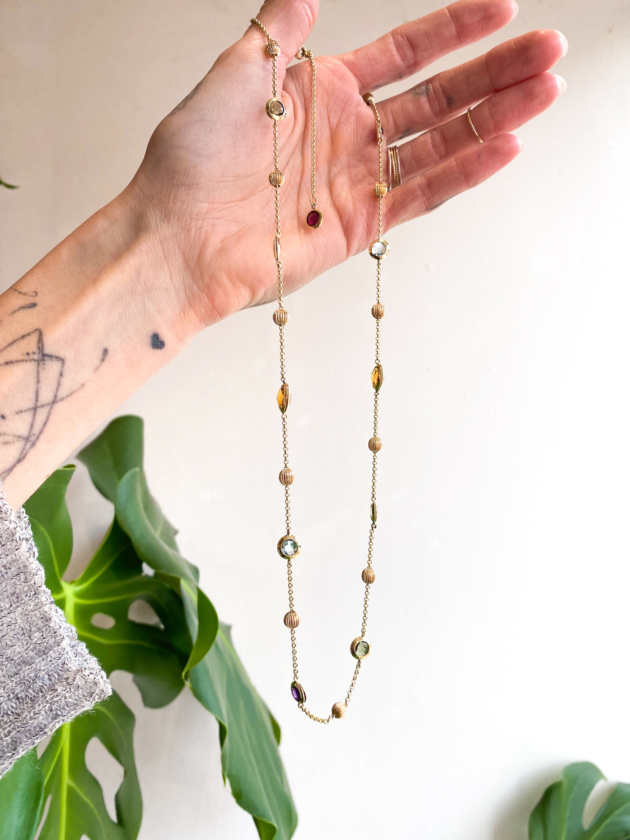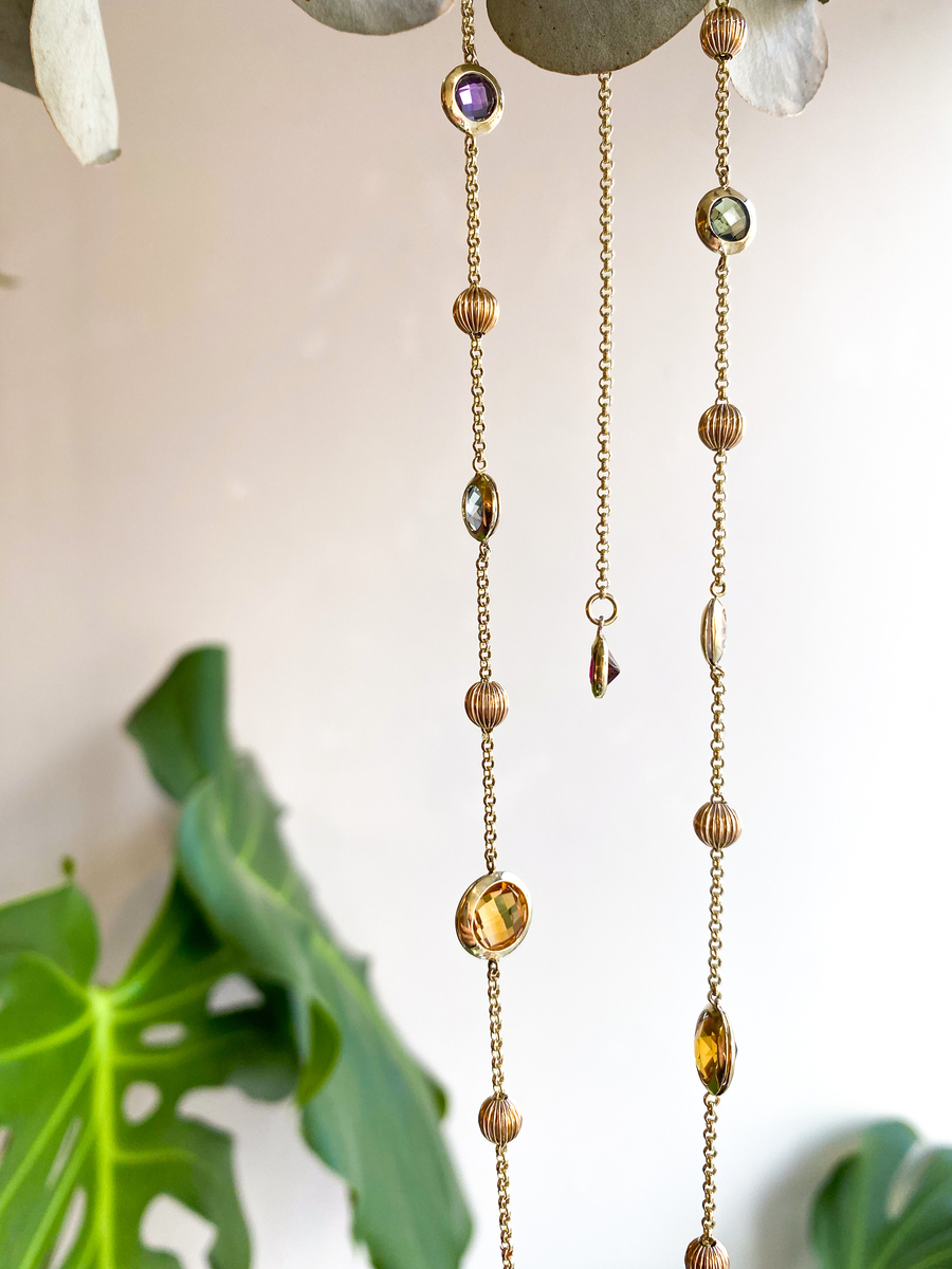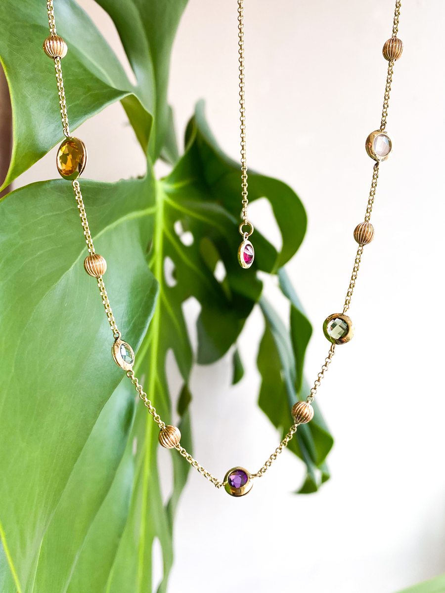 Náhrdelník ze žlutého zlata s přírodními leštěnými minerály