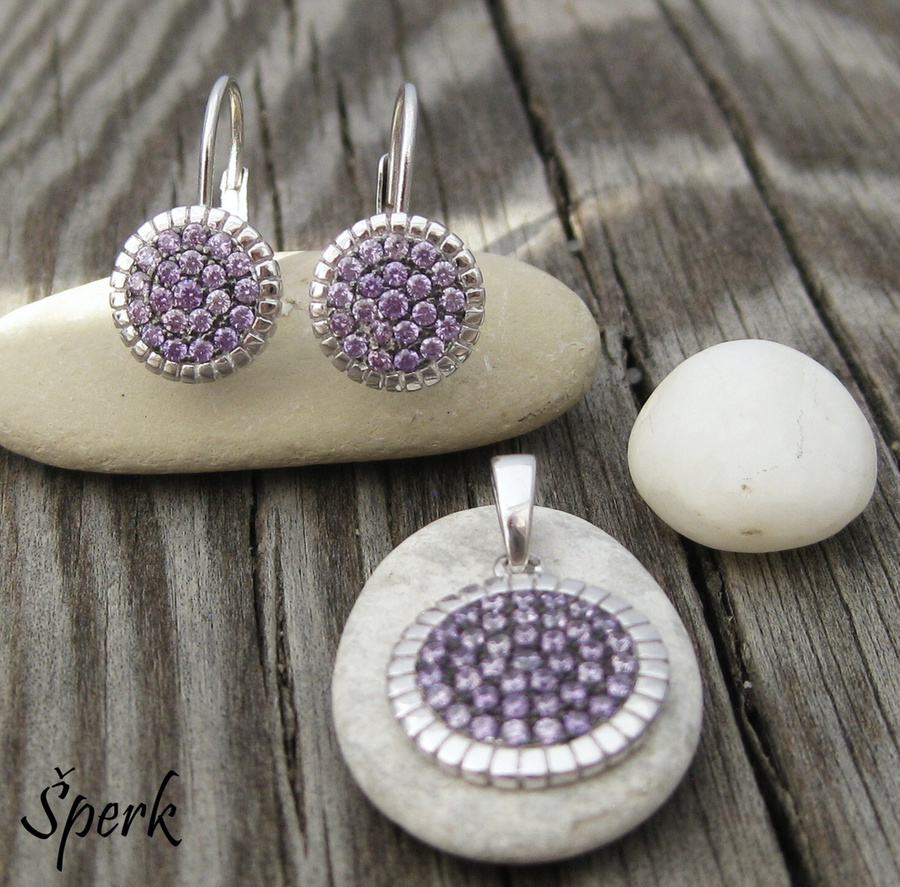 Stříbrné šperky se zirkony jsou opatřeny rhodiovaných povrchem, který zvyšuje lesk a činí šperky odolnějšími. Střed kolečka či čtverce zdobí velký počet drobných zirkonů, které jsou lemovány samotným stříbrem, zlatem nebo další řadou zirkonů. Lem z drahého kovu dává vyniknout lesklému zirkonovému vnitřku. Zirkony je často pokryto i odzobné očko u přívěsků.