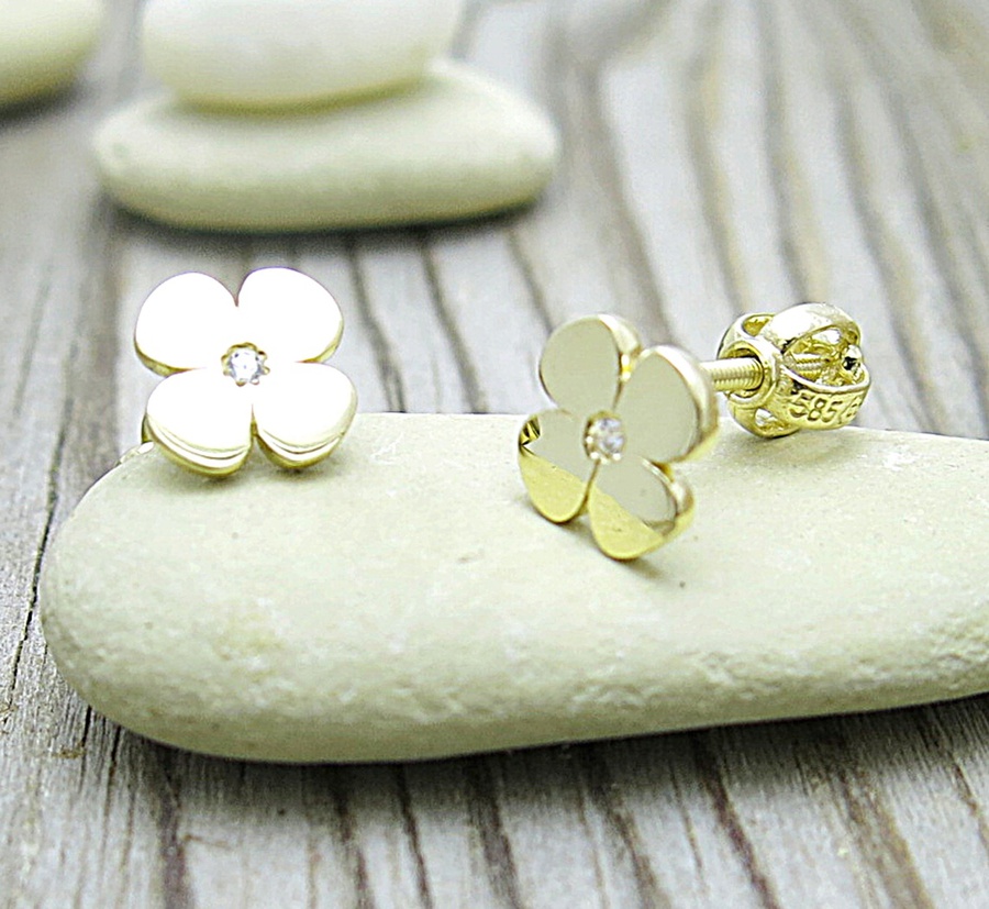 Jde v principu o klasické zapínání náušnic, kdy je háček otočený dopředu tak, aby opravdu nikde netlačil a nositelka o něm ani nevěděla. Pokud vybíráme dětské náušnice nebo náušnice pro miminko, sáhneme vždy po tomto typu.